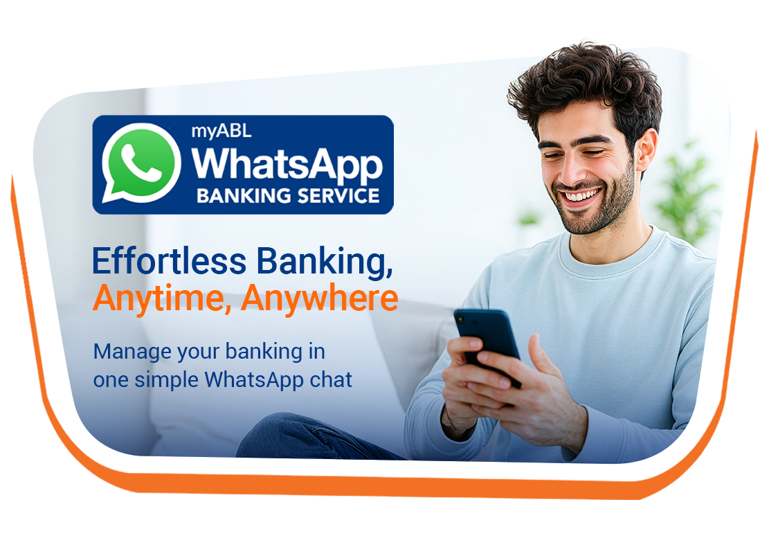 Allied Bank introduces myABL WhatsApp Banking, which offers financial transactions and inquiries to all of its customers. There is no need to visit any ABL Branch or ATM for a Balance Inquiry or Mini Statement. Simply save the myABL WhatsApp number 0300 1225225 in your contact list and immediately start chatting with us. Communication is encrypted from end to end to guarantee the privacy and safety of our customers.